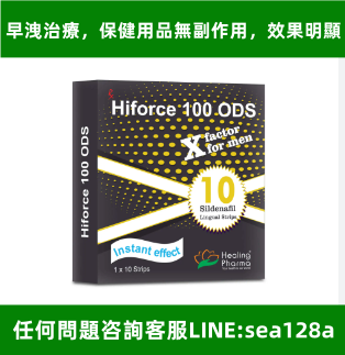 - 威爾鋼口溶片 全新快速強效 hiforce 100 ods (hiforce 100 ods 100mgX10) NT$2160 Hiforce 100 ODS 是最常使用且最知名的治療男性性功能障礙的藥物。此藥的主要成分是枸櫞酸西地那非。它通常用於增加陰莖血流,幫助男性獲得併維持勃起,從而改善性活動。